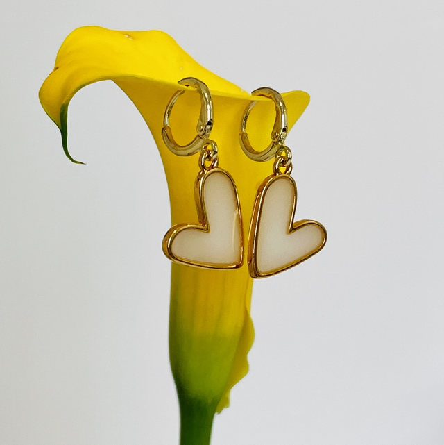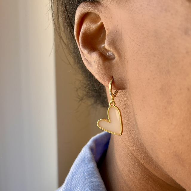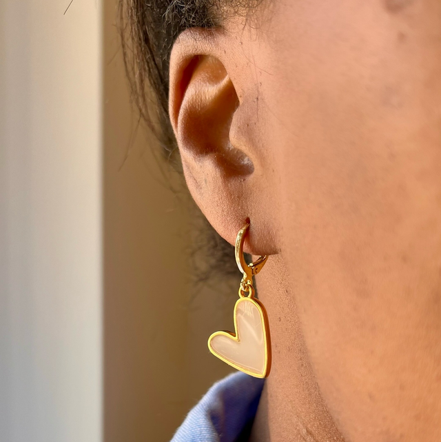 Boucles d’oreilles plaquées or, composées d’un pendentif de vitrail couleur nacre.