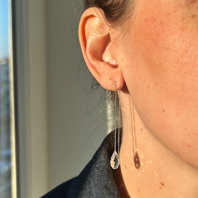 Fine goutte facettée en cristal autrichien transparent, suspendue à une délicate chaîne en argent 925/1000.